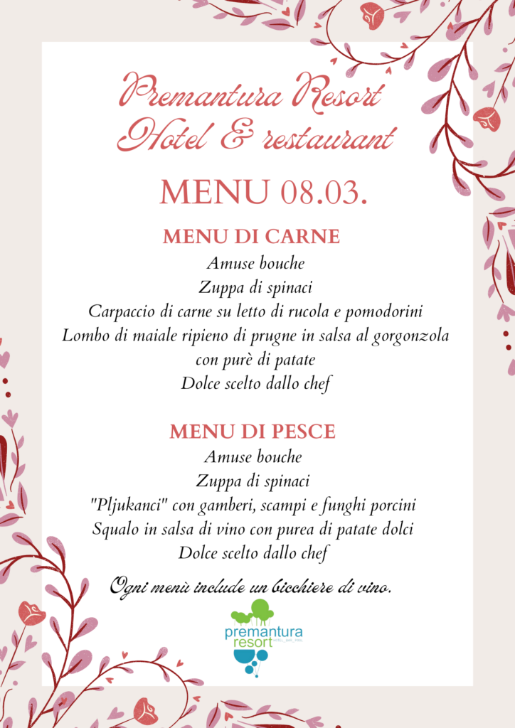 In occasione della Festa della Donna, abbiamo preparato un menù speciale pensato per il piacere. Nell'accogliente atmosfera del ristorante, vi attendono piatti accuratamente selezionati, sapori raffinati e un'atmosfera festosa, ideale per una cena in buona compagnia. Festeggiate la Festa della Donna con gastronomia di alto livello e momenti indimenticabili.