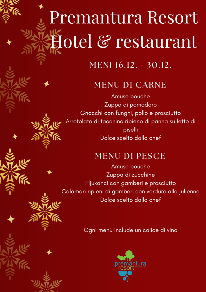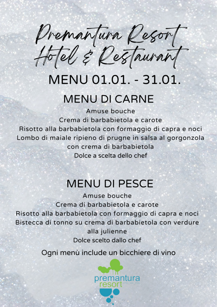 • Menù di pesce o di carne da 5 portate (menu illustrato in foto) con calice di vino