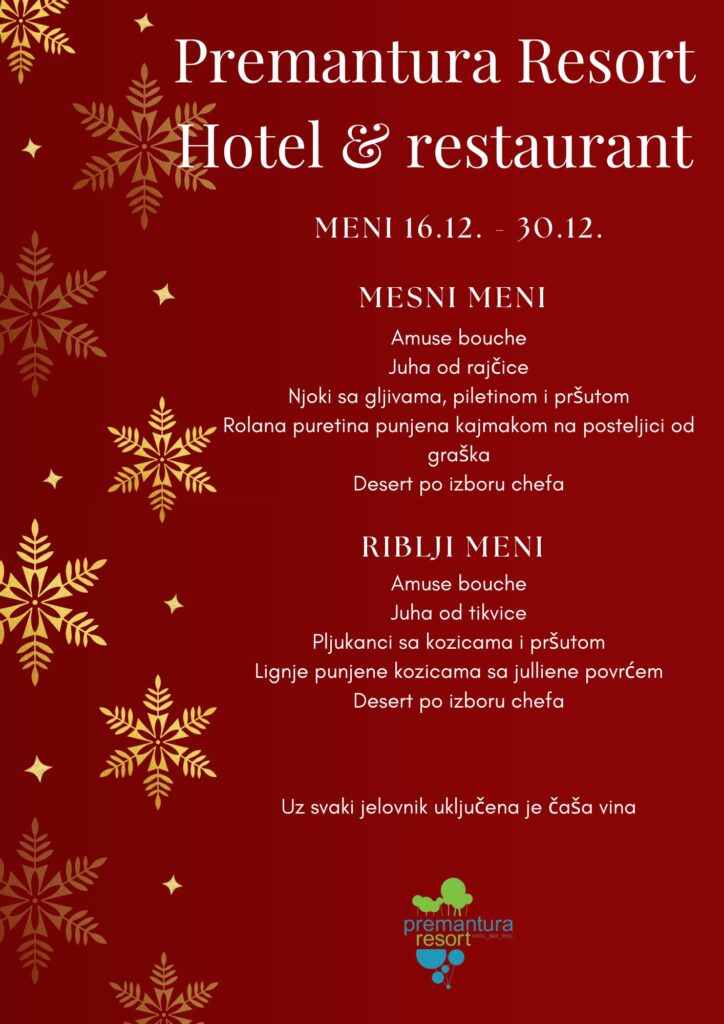 • riblji ili mesni meni od 5 slijeda s uključenom čaša vina